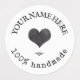 Custom logo waterproof food labels. Cute personalised round rustic stickers with custom typewriter text, leaves decor and an heart. You can change the heart with your logo, image or any decoration. Cute, elegant and very warm food labels.