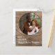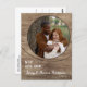 Unique, classy, trendy, pretty and decorative Thanksgiving holiday card. Cute WITH LOVE FROM text and room to customise or personalise with a photo and names (or family name) of your choice. With classic warm autumn orange, red and brown botanical leaves pattern and a farmhouse style weathered wooden look background design. And a customisable thoughtful fall season greeting poem on the backside of the card.