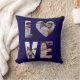 Celebrate your love story with this customizable LOVE photo collage pillow, featuring a bold navy blue background and space for four personal photos. Each letter in the word "LOVE" is filled with your own images— with the “O” in the shape of a heart for a sweet and romantic touch.