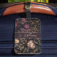 custom luggae tag with dark flower pattern