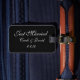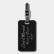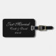 Custom luggage tag shown in black/white with Just Married text. Customise this tag and change names and date to yours. You can even change colours.