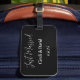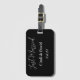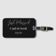 Custom luggage tag is shown in black and white with Just Married text and sample names, customise this tag and change the sample names and date to yours with this template.
