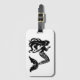 Custom luggage tag shown in black and white with a cute fancy mermaid print and has a business card slot on the other side.