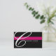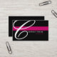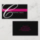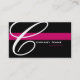 A black background with a dark pink stripe. Replace the large "C" with the first letter of your company's name for a custom look. All of your contact information is on the back of the card. Font and font size and colour can be changed.