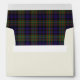 Lovely custom envelope done in cream, with the colourful purple, green, yellow, black, and red clan MacLellan tartan pattern, on the inside of the envelope. Black script text return address, on the back flap, is ready to personalise. Perfect addition to our MacLellan plaid wedding invitation set.