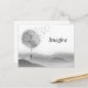 Never stop dreaming and imagining! This custom text postcard features a lovely surreal balloon design in black and white. The picture has a magical hot air balloon flying above the mountains that looks like a large dandelion blowing in the wind. The text says "Imagine" in black script. These postcards are customisable. You can personalise the text, font, and text colour if you wish. Just hit the Personalise button to enter your own text, or hit the Customise button to make any style changes. Makes a special postcard or inspiring decoration! This design is also available on stickers and a notebook.