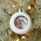 Custom Maltese Dog Photo with Cute Elf Ceramic Ball Christmas Ornament