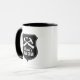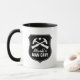 Custom manly man cave coffee mug for guys. Personalised combo colour cup for dad, husband, boyfriend, uncle, grandpa, boss, coworker, friend etc. Crossed hammer tool shield sign with star. Black and white and other colours. Cool masculine gift idea for Birthday, Christmas and more. Double sided print. Fun cups for home, garage, basement and office.