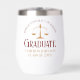 This maroon and gold custom law school graduation wine glass gift features modern typography for a class of 2024 graduate. Customise with your graduating year under the scales of justice for a great personalised lawyer keepsake for a graduating attorney.