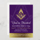 In need of custom masonic invitation templates for your upcoming Grand Lodge event? Here are classy purple and gold masonic invitations that you can personalise for your Annual Installation of Officers, Grand Lodge Annual Communication, or other special celebration. The unique, elegant design features a gold square and compass logo of freemasonry atop a deep purple background with a gold bar accent at the bottom. If you were looking for masonic installation invitation cards that aren't for grand lodge, not to worry - you can easily change the background colour to black, navy blue, or any colour to match your theme as well. These personalised masonic invitations are double sided so that you can add additional even details to the backside, along with photos if you so wish. Category: masonic invitations installation; freemason invitations; and masonic installation invitation cards. Colours: deep purple and gold