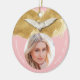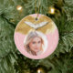 Elegant keepsake memorial holiday ornament with photo of your angel. Watercolor modern design complete with heart and angel wings. Touching way to be reminded of someone dear to your heart. Text template where you can add name and details customised by you. Pink and gold.