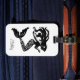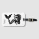 Custom luggage tag is shown in a black and white fancy mermaid print and has a card slot on the other side.