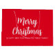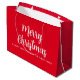 Custom Merry Christmas Happy New Year Handwritten Script Text Name Elegant Modern Template Red & White Large Gift Bag.