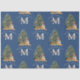 Custom Merry Christmas Monogram Tiger & Tree Blue Tissue Paper