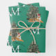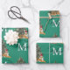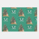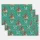 Custom Merry Christmas Monogram Tiger & Tree Green Wrapping Paper Sheet