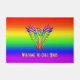 A gorgeous LGBT welcome doormat featuring an embossed-look, rainbow phoenix, wings outstretched and rising from the ashes. It's on a matching background and uses a custom message that you can change, just by typing into the box.