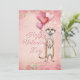 Happy Valentine's Day romantic card with a personalized message and a meerkat illustration with heart balloons. Pink and red background with a plaid backing.