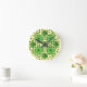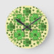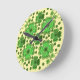 Custom Metallic Green Clover & Swirl Pattern Round Clock