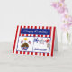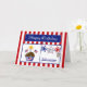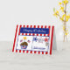 This Patriotic Birthday Card will make your military man or woman smile. This colourful card features a red and white striped background, chocolate cupcake with stars, American Flags, a flag heart and a candle, red, white & blue stars, a dog tag embossed with "USA" and a blue banner with the text "Happy Birthday" in white. Personalise with a name and age. ©2015 Dog Tags & Combat Boots Military Cards by Sherry Harris