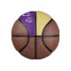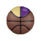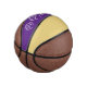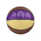Custom mini basketball is shown here with colour accents of purple and gold with a dog paw print.