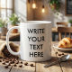 Create your own personalized coffee mug with this clean, minimalist design. Featuring bold black text on a classic white background, this mug is perfect for adding your name, favorite quote, or business logo. A versatile and thoughtful gift for coffee lovers, coworkers, or clients who appreciate simple and modern style.