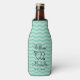 Custom turquoise / mint green chevron pattern wedding bottle coolers. Personalised wedding can cooler for groomsman. Fancy zig zag stripe wedding bottle holders with cute heart and arrow. Classy design with name or monogram letters. Romantic love symbol design. Make one for with for team groom, groomsmen, best man, ring bearer etc. Create your own cosy wedding favour / souvenir for guests at your party. Romantic theme beverage holder design. Perfect for alcoholic drinks like beer. Also available for cans. Elegant script typography. Custom background colour. Zigzag pattern cosy cooler for chic wedding, fancy bridal party, funny bachelor party etc.