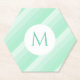 Custom Mint Green Stripes Modern Monogram Template Paper Coaster