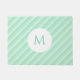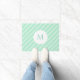 Custom Mint Green Stripes Trendy Modern Monogram Doormat