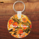 Custom Mod Mid Century Orange Flowers Yellow Brown Key Ring