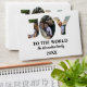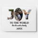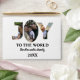 Custom modern 3 photo collage joy to the world. Personalise with your photos, family name and year
