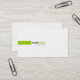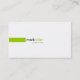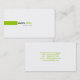 A modern design with a green rectangle centred to the left side on a white background with black text for the first name and matching green for the last name. The white background colour can be changed when customising, click "edit" then "background" then choose your colour. Text colour and font may also be changed. Additional information in matching green is on the back side of card.