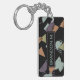 Durable rectangular key chain with classy, fun and contemporary violet purple, green, grey and orange-brown coloured abstract geometric triangles, polka dots and half circles mosaic pattern design on a black background. With room to customise or personalise with name of your choice. Stylish, modern and cool customisable style for the fashionable man. To attach to your briefcase or backpack zipper, to hold loyalty rewards or membership cards, or of course... to hold keys! What ever keys you want to stay in place and hold together, a unique personalised key ring will make it look nicer and also easier to recognise as your own set. Click on our store name to check out more unique key holders with other custom designs.