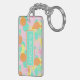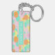 Durable rectangular key chain with classy, fun and contemporary aqua turquoise blue, mint green, orange, pink and yellow coloured abstract geometric triangles, polka dots and half circles mosaic pattern design on a white background. With room to customise or personalise with name of your choice. Stylish, modern and cool customisable style for the fashionable man. To attach to your purse or backpack zipper, to hold loyalty rewards or membership cards, or of course... to hold keys! What ever keys you want to stay in place and hold together, a unique personalised key ring will make it look nicer and also easier to recognise as your own set. Click on our store name to check out more unique key holders with other custom designs.