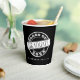 This modern and trendy black graduate paper cup features a white "class of" wording inside a circle that looks like a stamp. Simply enter the graduate’s name and graduation year.