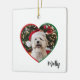 Celebrate the season with this adorable pet photo Christmas ornament. You can upload your own photo to this heart shaped photo template, with a red and green border around the heart shape.