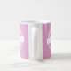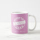 This pretty and modern design features a white circle as a stamp with white typography that reads “class of” and your graduation year. Pink background colour and white text with your name.