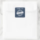 Modern navy blue graduate thank you stickers featuring a white "class of" wording inside a circle that looks like a stamp. Simply enter the graduate’s name and graduation year.