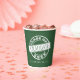 This modern and simple green graduate paper cup features a white "class of" wording inside a circle that looks like a stamp. Simply enter the graduate’s name and graduation year.