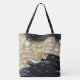 Cast in a palette of subtle creams, greys, and blacks, the design evokes the calmness of a foggy morning by the sea. The tote's pattern is a visual journey through shadows and light, offering a serene and calming presence to accompany you through the hustle and bustle of city life or the peaceful stroll in a park.