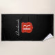 Custom monogram beach towel gift with surname. Elegant beachtowel with monogram name initial. Classy Holiday or Birthday gift idea for men, women and kids. Create personalised towels for friends, family, mum, dad, children, students, boss, co worker, colleague, husband, wedding couple, newly weds, bride and groom, mr and mrs etc. Chic summer accessories for beach or pool party. Logo shield with luxury typography.