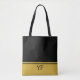 A gold band is at the bottom of this black and gold tote bag. Personalise with your initials.