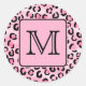 Custom Monogram. Black and Pink Leopard Print. Classic Round Sticker
