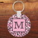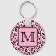 Custom Monogram. Black and Pink Leopard Print. Key Ring