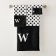 This monogrammed bath towel set is black and white and has a classic polka dot pattern. Personalise the set with the recipient's monogram/initials.