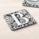 Custom Monogram Black and White Floral Tattoo Art Coaster