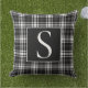 Stylish outdoor pillow with a chequered black and white buffalo plaid/tartan design, personalised with your monogram/initial. Perfect for your farmhouse decor.