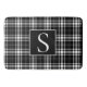 Custom Monogram Black White Buffalo Plaid Bath Mat