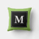 Custom monogram block letter throw pillow. Monogrammed decoration cushion for sofa or bedroom. Personalizable double sided design with elegant typography. A B C D E F G H I J K L M N O P Q R S T U V W X Y Z. blockletters. Customisable border egde colour ie green. Chic home decor.