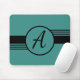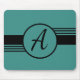 Mouse pad with a blue background, black stripes, and a custom monogram