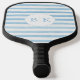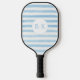 Personalise this pretty pale blue and white stripe pickleball paddle with a custom monogram.